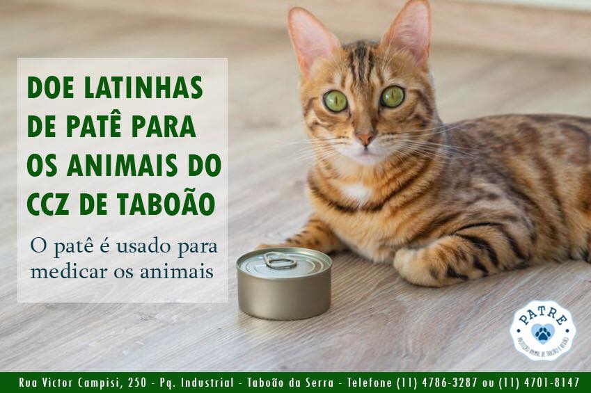 VOCÊ PODE DOAR LATAS DE PATÊ PARA CÃES E GATOS DO CCZ DE TABOÃO?