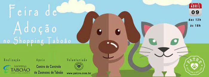 Tá chegando o grande dia do evento de adoção mais esperado de Taboão e região – a Feira de Adoção do Centro de Controle de Zoonoses de Taboão da Serra, realizada pelo Shopping Taboão. A feira acontece ao lado do estacionamento coberto no Shopping.
