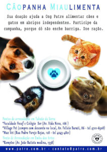 “O nosso intuito é conseguir ajudar ainda mais animais do que ajudamos em todas as edições anteriores da Cãopanha Miaulimenta. Queremos bater o nosso recorde para conseguir beneficiar pelo menos 900 animais na quarta fase da campanha”. Disse Sheila de Oliveira, presidente da Patre.